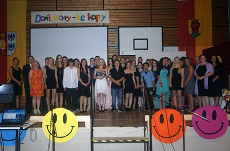 Die Entlassfeier der Schülerinnen und Schüler der Klassen 9 und 10 in Limbach stand unter dem Mott „Don´t worry be happy“. Die Klasse 10 mit ihrer Klassenlehrerin Frau Blaß hatten die schwungvolle und kurzweilige Feier organisiert. Unterstützt wurden sie dabei durch die Abschlussschüler der Klassenstufe 9, die in ihren Präsentationen unter anderem einen Blick in die Zukunft wagten.