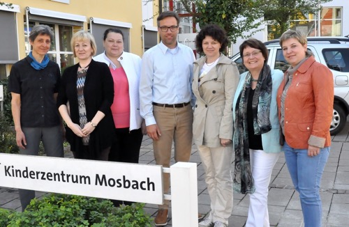 Deutsch-russischer Austausch im Kinderzentrum Mosbach (v. l.): Kristin Kälber, Swetlana Wassiljewa, Natascha Gonchakowa, Dr. Daniel Vater, Swetlana Starostina, Dorothea Volkert, Natascha Kuznetsowa. (Foto: pm)