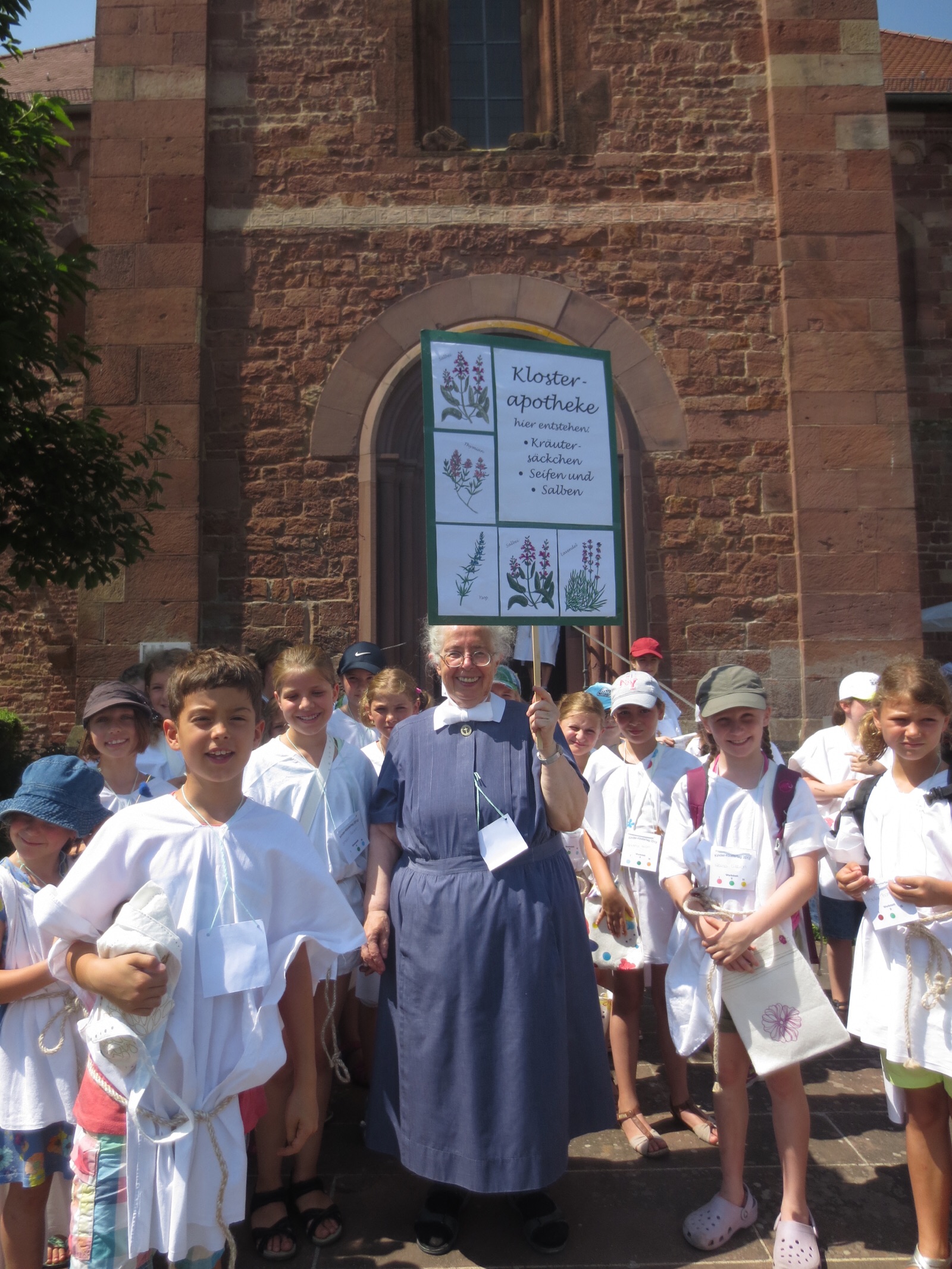 Bogenschießen, Salbenherstellung in der Klosterapotheke, eine Kunstwerkstatt, ein Spinnenetz in 3D, trommeln und singen, ein Klosterstall, eine Imkerei und vieles mehr hatten die Organisatoren für die 6-12j-ährigen Besucherinnen und Besucher vorbereitet. Diese schlüpften für einen Tag lang in eine Mönchskutte und erlebten Kloster pur- Stundengebet eingeschlossen.