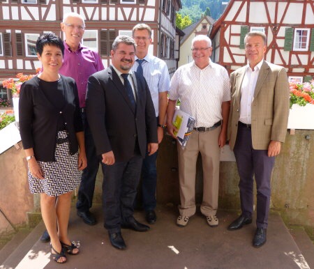 Auf dem Bild von links: Amtsleiterin Simone Bansbach-Edelmann, Personalratsvertreter Wolfgang Baur, Bürgermeister Michael Keilbach, Personalabteilungsleiter Jürgen Ehler, Klaus Kirschenlohr und Oberbürgermeister Michael Jann. (Foto: pm)