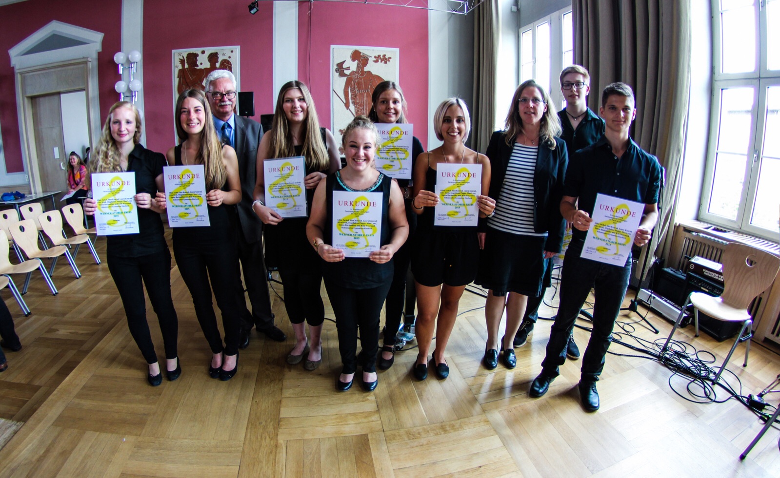 Eberbach. (pm) Die Schülerinnen und Schüler des Neigungskurses Musik 12 unter der Leitung von Frau Gewahl bekamen in diesem Jahr im Juni die Ehren der Werner-Stober-Stiftung in Karlsruhe als gesamter Kurs im Ensemble zuerkannt. Die Stiftung ehrt Schülerinnen und Schüler mit überdurchschnittlichen Leistungen und Engagement im Fachbereich Musik.