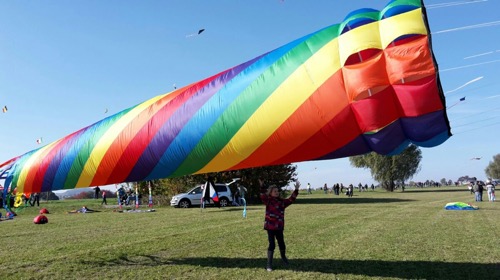 Da nicht nur die Sonne mitspielte, sondern auch der Wind seiner zugedachten Rolle gerecht wurde, waren nicht nur unzählige bunte, teilweise selbst gebastelte Drachen am strahlend blauen Himmel zu sehen, auch von Profis gesteuerte Großdrachen tanzten im Wind.