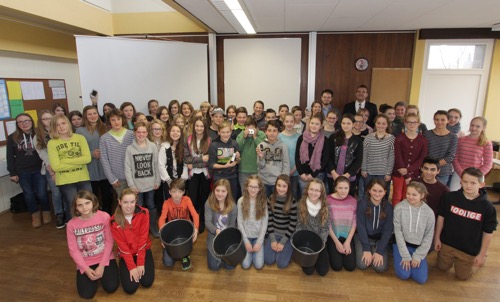 Die Auftaktveranstaltung war am vergangenen Donnerstag in der Realschule. 60 Siebtklässler aus den Kursen „Mensch und Umwelt“, begleitet von ihren Lehrerinnen Martina Linker und Sonja Felleisen, erfuhren von den beiden AWN-Projektbetreuerinnen Susanne Wirtz und Claudia Arlt aus den Bereichen Beratung und Öffentlichkeitsarbeit nicht nur, wie eine Deponie aufgebaut ist. Interessant war auch, dass man beispielsweise für die Herstellung einer Tasse Kaffee über 100 Liter Wasser aufwenden muss – sehr plakativ standen zehn Wassereimer im Klassenraum, neben denen die kleine Kaffeetasse sehr unscheinbar aussah.