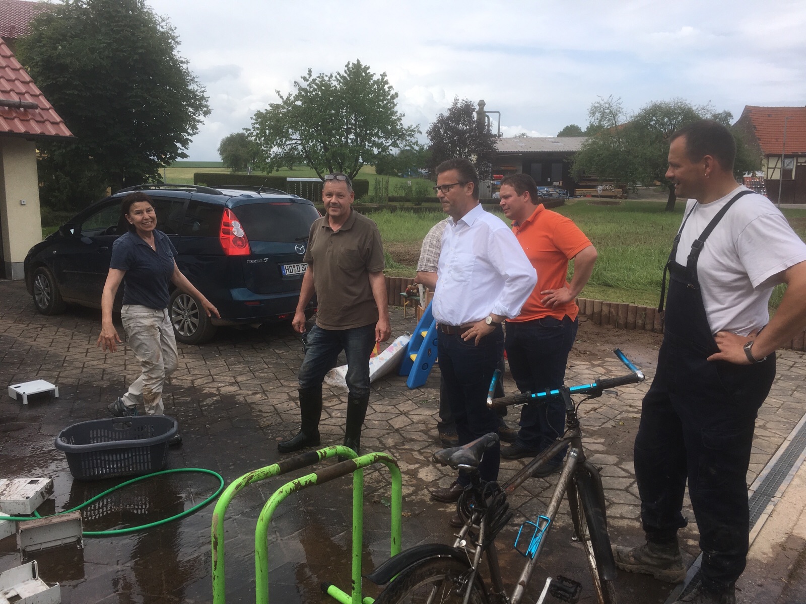 „Die Eindrücke sind teils verheerend und schmerzlich mit an zu sehen, wie ganze Landschaftsabschnitte, Häuser und Straßen von den Wassermassen zerstört wurden. Das Land muss und wird den Kommunen als starker Partner bei der Bewerkstelligung der Folgen zur Seite stehen. Die Landesregierung wird in den kommenden Tagen über Lösungsansätze beratschlagen“, so Peter Hauk, Minister für Ländlichen Raum und Verbraucherschutz, bei seiner Stippvisite in den zwei stark betroffenen Gemeinden.