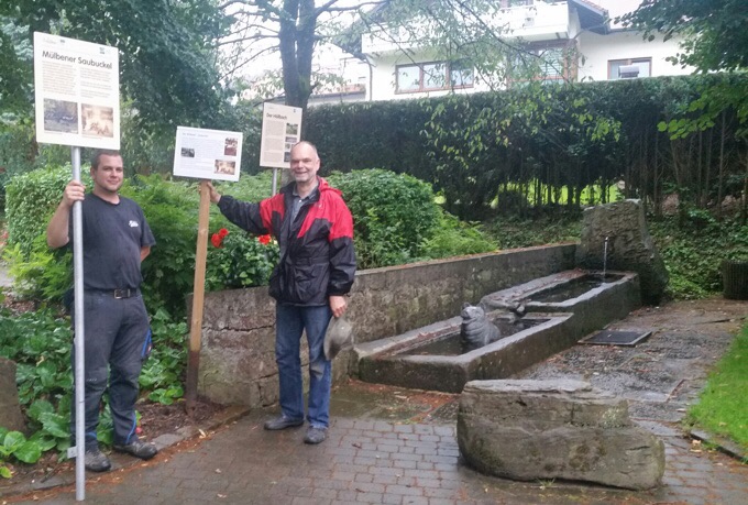 Mülben. (pm) Wie bereits mehrfach erwähnt, wurde Mülben beim Wettbewerb mit einer Silbermedaille auf Landesebene bedacht. Damit würdigte die Jury das außergewöhnliche Engagement bei der Entwicklung einer zukunftsfähigen dörflichen Heimat. Dabei wurden auch markante Örtlichkeiten im Waldbrunner Ortsteil mit entsprechenden provisorischen Informationstafeln ausgestattet. So wurde nicht nur ein Bildstock auf dem ehemaligen Kirchpfad zum verlassenen Ferdinandsdorf berücksichtigt, auch am Mülbener Saubuckel und der historische Apfelquetsche im Kurpark erhielt ein Schild. Auf Anregung des NABU Waldbrunn wurde außerdem ein Höllbach-Lehrpfad ausgewiesen mit drei Tafeln gewürdigt, die mit Standorten an der Holzners Mühle im Höllgrund, im Mülbener Ortskern sowie am Ortsausgang in Richtung Wagenschwend Bedeutung des Höllbachs in ökonomischer und ökologischer Hinsicht erläutern.