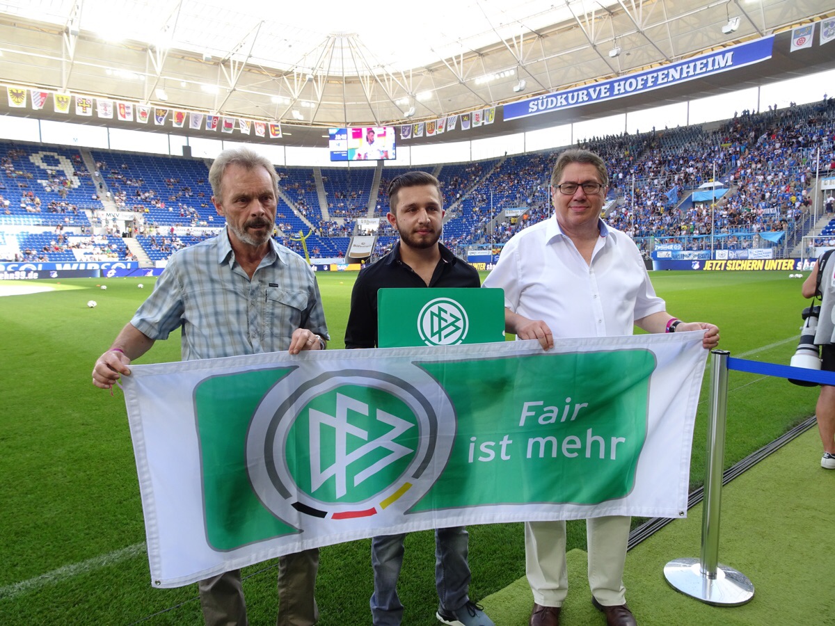 Sinsheim. (pm) Der Badische Fußballverband (BFV) zeichnete im Rahmen des Bundesliga-Spiels 1899 Hoffenheim – RB Leipzig (Endstand 2:2) am Sonntagabend in der Rhein-Neckar-Arena in Sinsheim Osman Ekinci (19) vom TSV Frankonia Höpfingen mit der „Fair Play-Geste des Jahres 2015/16“ aus.
