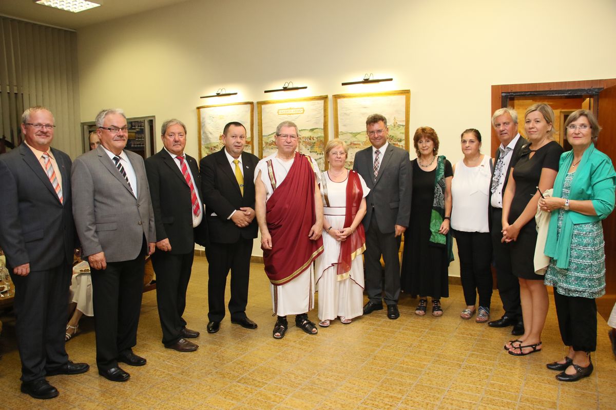 Unser Bild zeigt die Delegation aus dem Neckar-Odenwald-Kreis beim offiziellen Empfang anlässlich des historischen Römerfestes durch den Oberbürgermeister der Stadt Szombathely Dr. Tivadar Puskás (5.v.l. in römischer Toga) zusammen mit Präsident László Majthényi (4.v.l.), Vizepräsident Ferenc Marton (3.v.r.) und Landrat Dr. Achim Brötel (6.v.r.). (Foto: Stadt Szombathely)