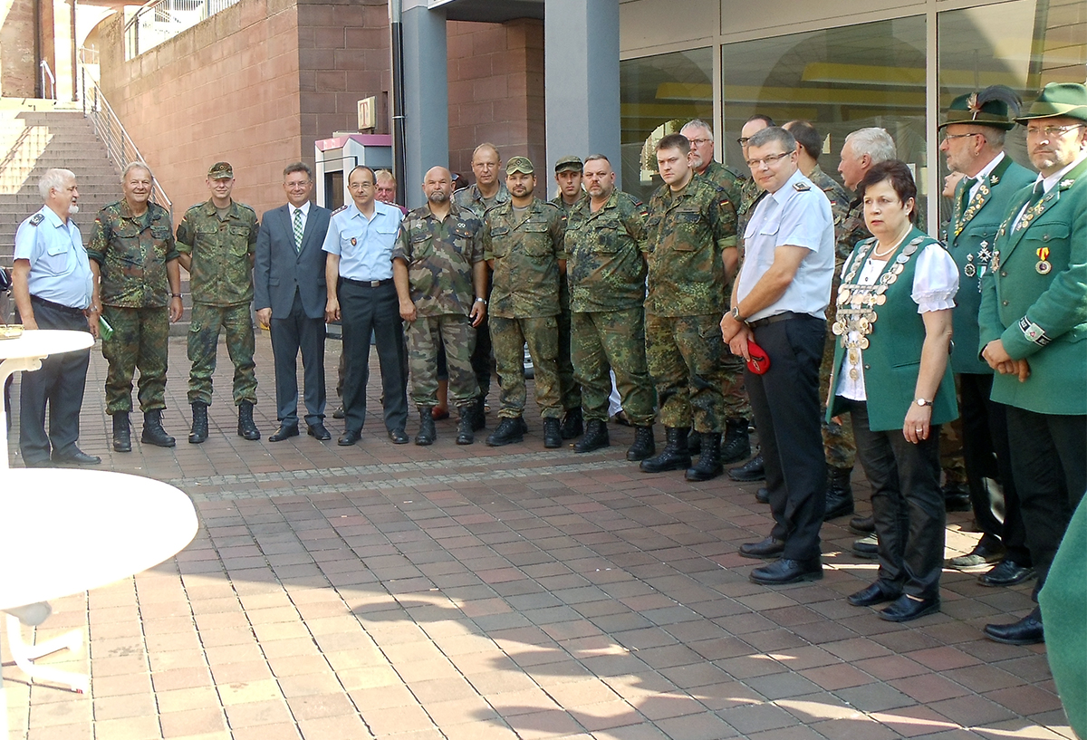 Landrat Dr. Achim Brötel dankte für dieses Zeichen der Wertschätzung und betonte, dass die Reservisten im Kreis ein zuverlässiger Partner seien, wenn es um beiderseitige Interessen und die Übernahme von Aufgaben innerhalb des Kreises gehe. Bürgermeister Roland Bürger und Oberstleutnant Marco Dietzmann gingen ebenfalls auf die hohe Einsatzbereitschaft und das ehrenamtliche Engagement der Reservisten ein, das überall da einsetze, wo es im ländlichen Raum kaum oder keine aktiven Soldaten mehr gebe.