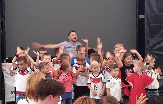 Das Lied „Wir sind, Wir sind, ein cooles junges Team“, bei dem der Refrain von den kleinen Ballkünstlern selbst eingesungen werden durfte, soll den Spaß am Fußball, den Fair-Play-Gedanken und das Zusammengehörigkeitsgefühl in der Mannschaft und zum Ort stärken.