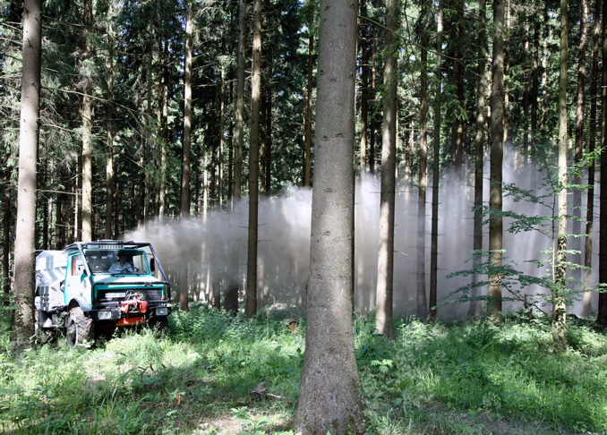 Gekalkt wird mit Dolomit-Gesteinsmehl, dem je nach Standort noch Holzasche beigemischt wird. Das Material wird zum Großteil mit Fahrzeugen in den Bestand geblasen. An den nicht befahrbaren Hängen um die Burg Stolzeneck wird zudem ein Hubschrauber zum Einsatz kommen. Die Staubbelastung ist aufgrund neuer Ausbringungstechniken und der Befeuchtung des Materials relativ gering. Die Kosten für das Material und die Ausbringung werden vom Europäischen Landwirtschaftsfonds für die Entwicklung des Ländlichen Raums, dem Land Baden-Württemberg und dem Bund getragen.