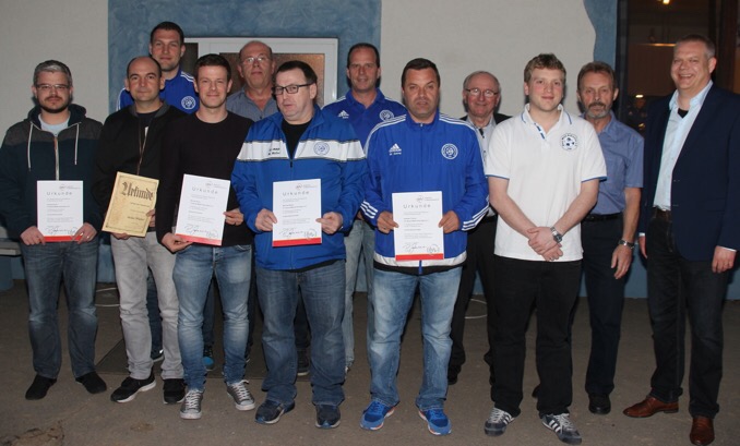 So konnten Christian Brech und Michael Walter für 25-jährige und Jürgen Scheuermann für 40-jährige Treue zum Verein ausgezeichnet werden. Der Verband ehrte Stefan Scheuermann und Manuel Roos für zehn Jahre Spieleraktivität und Joachim Balles, Andreas Roos und Stephan Czerny für zehn Jahre Tätigkeit im Spielausschuss.