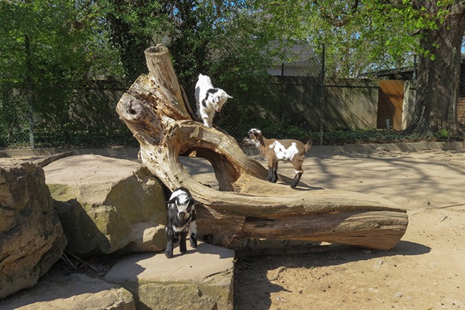 Die jungen Zicklein im Streichelzoo wagen erste Kletterversuche. (Foto: pm)