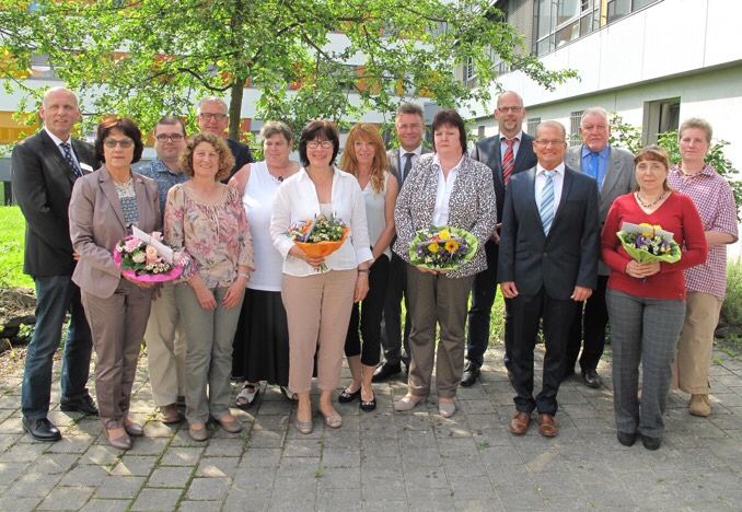 Eingefunden im Konferenzraum des Mosbacher Standorts hatten sich dazu neben den Geehrten Klinikgeschäftsführer Norbert Mischer, Aufsichtsratsvorsitzender Landrat Dr. Achim Brötel, Pflegedienstleiter Kurt Böhrer, der stellvertretende Pflegedienstleiter am Standort Buchen Martin Ruck, der Leiter des Wohn- und Pflegezentrums Hüffenhardt Thomas Walldorf und Betriebsratsvorsitzender Simon Schreiweis. Auch die jeweiligen unmittelbar Vorgesetzten waren geladen, um den Jubilaren mit ganz persönlicher Note für Ihre Leistung zu danken.