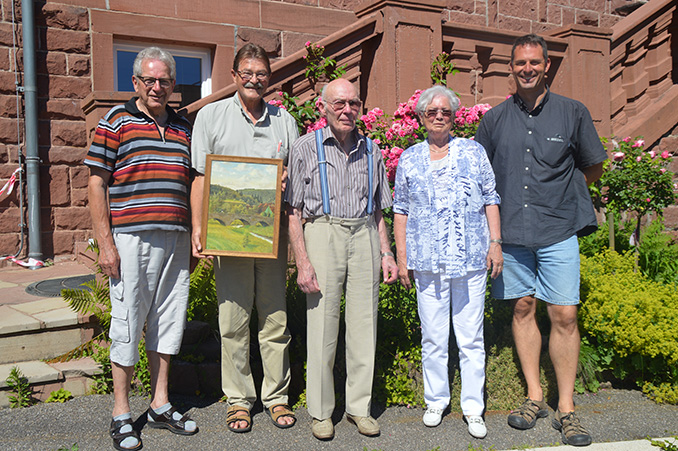 Abschließend schenkte Walter Speier dem Heimatverein ein Gemälde der früheren Morrebücke von Hettigenbeuern aus dem Nachlass seiner Mutter. Das Gemälde zeigt die Brücke nach dem Wiederaufbau, nachdem sie zum Kriegsende hin von US-Panzern beim Überqueren der Brücke zerstört worden war.
