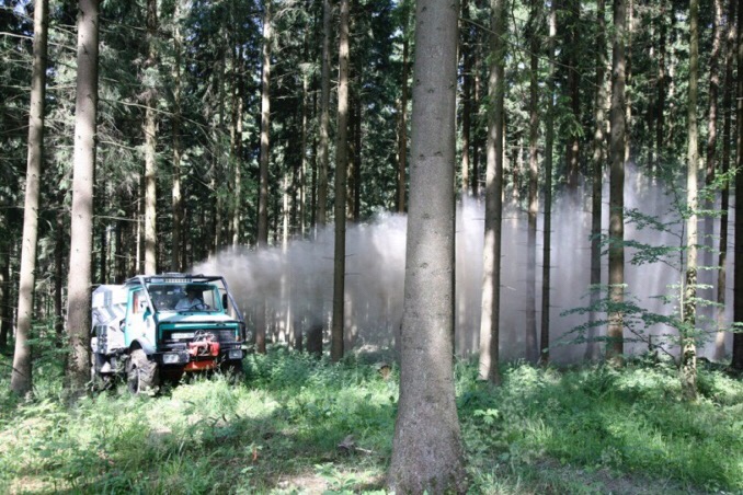 Die Kalkung wird durchgeführt, indem der Kalk in den Bestand geblasen wird. (Foto: LRA)