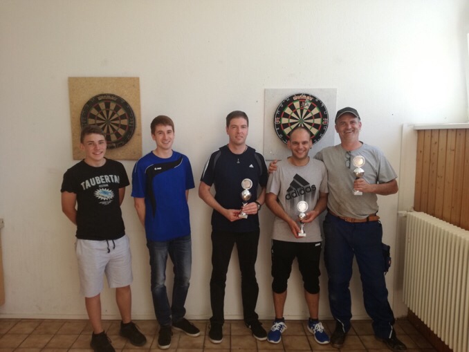 Auch für das leibliche Wohl der Spieler und Fans hatten die Jugendlichen bestens gesorgt. So konnten auch in den spielfreien Zeiten ein paar gemütliche Stunden verbracht werden, bei denen das Fachsimpeln der Dartprofis natürlich nicht zu kurz kommen durfte. Eines der Highlights erreichte das Turnier schon im Halbfinale. Dabei gelang es Lokalmatador Michael Müller, der zuvor die Gruppenphase nur knapp überstanden hatte, eine „180“ zu werfen. Der höchste Score, der mit den drei Pfeilen erreicht werden kann, indem alle auf dem Feld Triple 20 landen. Entsprechend herrschte bei Spielern und Fans eine gespannte Stimmung vor dem Finale, das er gegen den Scheidentaler Frank Brenneis bestritt. Beide schenkten sich nichts. Doch am Ende ging der Pokal für den Sieg nach Scheidental. Auch über den dritten Platz konnte sich mit Jochen Walter ebenfalls ein Scheidentaler freuen.