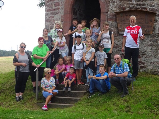 Zusammen mit Richard Gloger konnte er am Treffpunkt bei der Bäckerei Trabold in Seckach 14 Kinder und fünf Erwachsene begrüßen und mit einem kleinen Pausenstop bei der Tropfsteinhöhle in Eberstadt bis zum Wartturm bei Buchen führen. Hier nutzten alle die Chance, den Turm zu besteigen, um den großartigen Ausblick über Buchen und Umgebung genießen zu können.