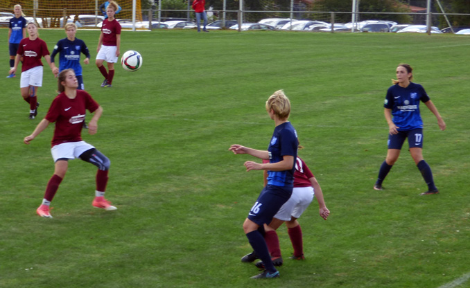 Großeicholzheim. (fb) Bei besten Bedingungen trafen die beiden Teams im regionalen Nachbarschaftsduell aufeinander. In einem über die komplette Spielzeit stark um kämpften Spiel neutralisierten sich die beiden Teams stark im Mittelfeld, sodass ein zunächst wenig attraktives Spiel zustande kam. Nach knapp 15 Minuten war es Sabrina Knüll, die erstmals gefährlich in Richtung des Diedesheimer Tores schoss. Eine Ecke der Gäste ging an fast der gesamten Klingeabwehr vorbei, jedoch ebenso an allen Mitspielerinnen. Der VfK versuchte über schnelle Konter Gefahr auf das Klinge-Tor auszustrahlen, doch die Defensive der Seckacherinnen agierte aufmerksam. Nach 23 Minuten nahm Jelena Roso eine Flanke per Kopf, dem Ball fehlte jedoch ein guter Meter zur rechten Torecke. Sie war es auch, die nach 27 Minuten per Schuss an der VfK-Keeperin scheiterte.