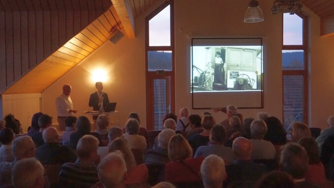 Bürgermeister Norman Link und Bürgermeister a. D. Peter Kirchesch ergänzten sich ideal und nahmen das begeisterte Publikum mit – durch interessante, spannende Bilder und Geschichten – in die freudige aber auch belastende Vergangenheit Neckargerachs.