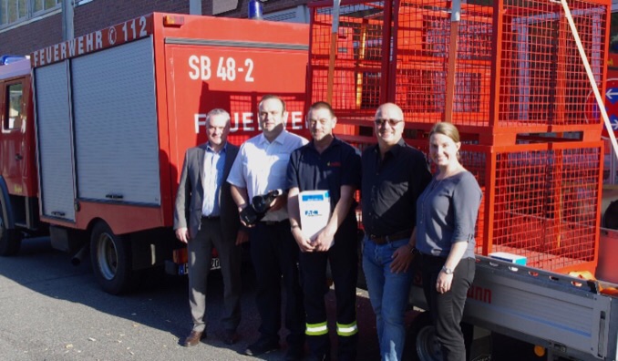 Im Rahmen der Eaton-Initiative zur Unterstützung kommunaler Vereine wurde der Freiwlilligen Feuerwehr Schönbrunn eine Sachspende in Form von 2 SEB 10 Handleuchten übergeben, welche aufgrund ihrer explosionsgeschützten Eigenschaft bei Einsätzen der Freiwilligen Feuerwehr gerne genutzt werden. Weiterhin wurden vier Gitterboxen gespendet, welche die schnellere Materialbereitstellung in Notfällen ermöglichen sollen.