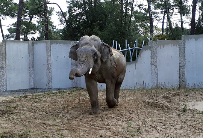 Elefant Gandhi hat die Fahrt gut überstanden und ist wohlbehalten im Zoo La Palmyre, Frankreich, angekommen (Foto: pm)