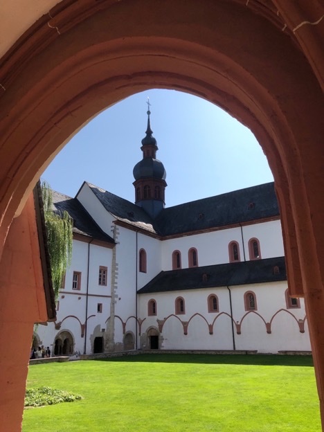 Die Klosterschänke stärkte für einen Rundgang um das unmittelbare klösterliche Anwesen, danach brachte uns der Bus nach Eltville am Rhein, einer sehr schön renovierten und belebten kleinen Stadt, mit Burg, gemütlichen Gassen und einer unvergleichlichen Uferpromenade.