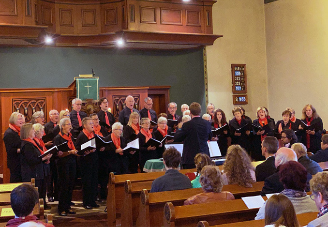 Eröffnet wurde das gefeierte Konzert von den Hausherren. Unter der Leitung von Tobias Henrich „stimmen“ Singkreis und Kirchenchor „an ein Lob des Herrn“. (Foto: Hofherr)