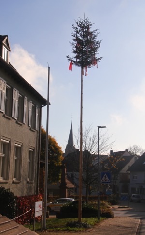 Damals wurde anlässlich der Bürgermeisterwahl von den Burschen ein Maienbaum vor dem Haus des Wahlsiegers aufgestellt. Etwas modifiziert wurde dieser schöne Brauch nun wieder ins Leben gerufen. Die im Brauch beschriebenen kräftigen Burschen stellte der Bauhof, der „Maie“ wurde im Gemeindewald gefällt, aber nicht vor des Regenten Häuschen, sondern vor dessen Amtssitz im Rathaus der Odenwaldgemeinde aufgestellt.