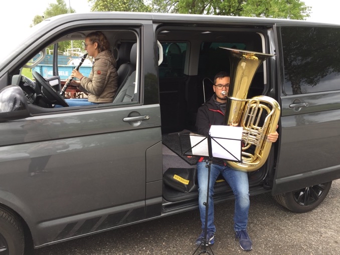 Um ein wenig Licht und Zuversicht in dieser ungewissen Zeit, die bei vielen Menschen von Ängsten und Einschränkungen geprägt ist, zu spenden, versammelten sich die Musiker des JBO Waldbrunn mit ihrem Dirigenten Thomas Schäfer unter Einhaltung aller Auflagen und auch mit dem vorgegebenen Sicherheitsabstand am 1. Mai auf dem Sportplatz und spielten zwei Lieder aus ihren Autos heraus.