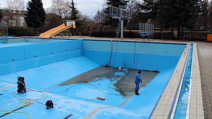 Tauberbischofsheim. (pm) Das Frankenbad wird derzeit für die neue Saison hergerichtet und soll bei gutem Wetter und Änderung der Rechtslage voraussichtlich Mitte Mai seine Tore öffnen. Aktuell dürfen die Freibäder noch nicht öffnen. Hier warten wir noch auf „grünes Licht“ aus Stuttgart. Seit Wochen ist das Team rund um Schwimmmeister Klaus Jorke dabei, das Bad auf den Schwimmbadbetrieb vorzubereiten: