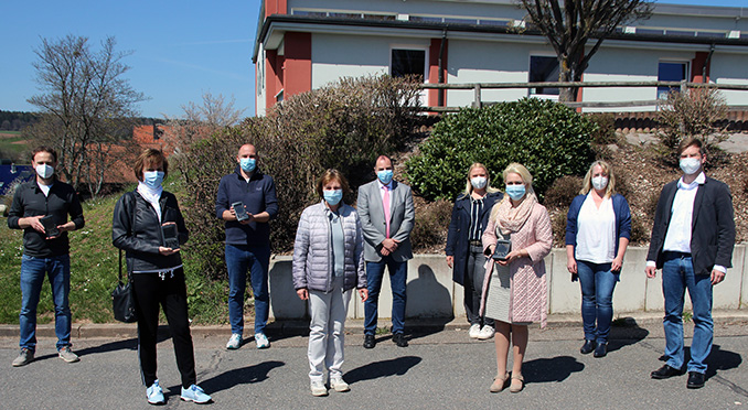 Die Messung der CO2-Konzentration ist ein guter Indikator für die Notwendigkeit einer Raumbelüftung und somit für die Reduzierung von Ansteckungsgefahren. Unterstützt von Büroleiterin Heike Roßbach und Öffentlichkeitsreferentin Jessica Büttner und im Beisein von Geschäftsleiter Roman Henn (Mosca Elektronik und Antriebstechnik GmbH9 sowie Michael Reimold als Vertreter der OKW Gehäusesysteme GmbH überreichte Sofie Klopsch dieser Tage die ersten Geräte an die Rektoren Markus Wellm (Schloßau) und Jochen Schäfer (Mudau) sowie die Kindergartenleiterinnen Marina Reer (Schloßau) und Katrin Scholl auf dem Parkplatz der Grundschule Schloßau.