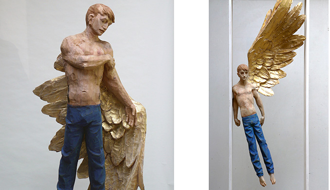 Bildhauer Thomas Hildenbrand aus Nüstenbach präsentiert seine Ausstellung „Vom Stürzen und Fliegen“ mit Holzfiguren von erstaunlicher Leichtigkeit. (Foto: pm)