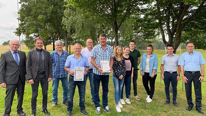 Unser Bild zeigt Verbands-Präsident Herbert Münkel (li.), Bürgermeister Jürgen Galm (2.v.li.) im Kreise der den geehrten Mitgliedern und der neuen Vorstandschaft. (Foto: pm)