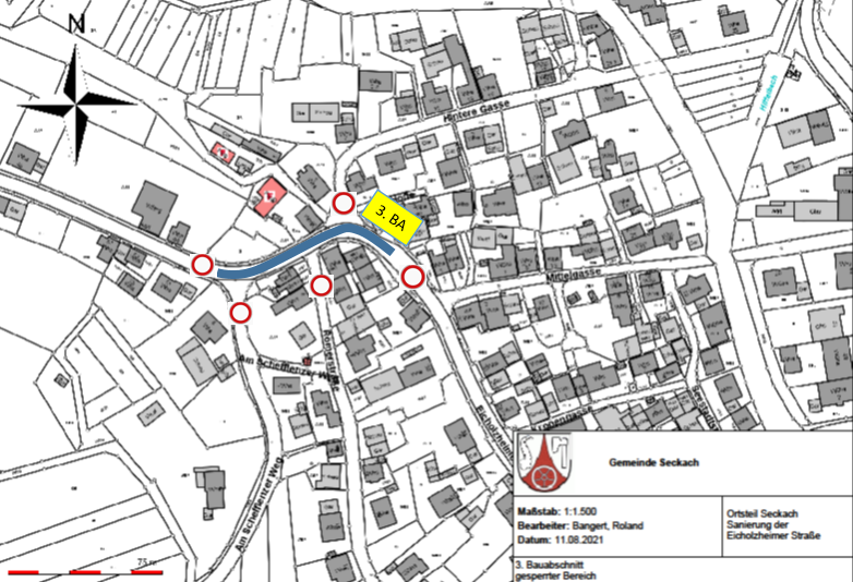 Ab diesem Zeitpunkt ist es nicht mehr möglich, die Baustelle innerörtlich zu umfahren. Alle Fahrzeuge, die von Großeicholzheim oder Schefflenz nach Seckach wollen, müssen deshalb die ausgeschilderten Umleitungen über Buchen bzw. Adelsheim nutzen.