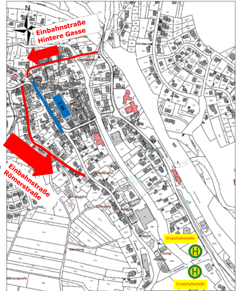 Ab sofort wieder Einbahnstraßenverkehr über die Römerstraße und die Hintere Gasse