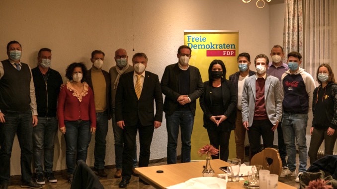 Die anwesenden Mitglieder der FDP Neckar-Odenwald um den wiedergewählten Kreisvorsitzenden Achim Walter (Foto: pm)