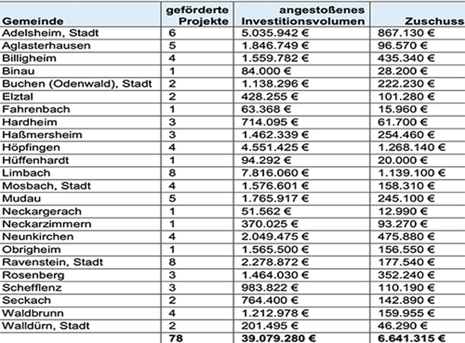 „All das sind mustergültige Projekte, die das Leben im Neckar-Odenwald-Kreis verbessern und attraktiver oder überhaupt erst möglich machen. Jedes Projekt hat dabei seine eigene Geschichte und seinen eigenen Mehrwert. Besonders ist zu betonen, dass 35 Prozent der Zuschussprojekte mit Holz gebaut werden. Die innovative Bauweise trägt künftig wirksam zur CO2-Speicherung bei“, ist sich Peter Hauk abschließend sicher.
