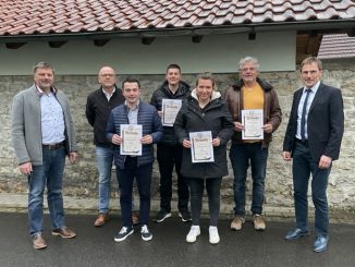 Unser Bild zeigt von links: Steffen Roth, Abt.-Kommandant Wagenschwend, Sebastian Schulz, Josef Bangert, Bürgermeister Thorsten Weber, Robin Schmitt und Kommandant […]