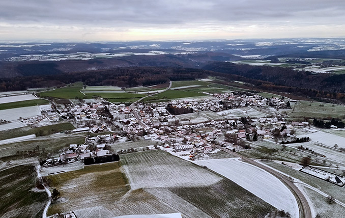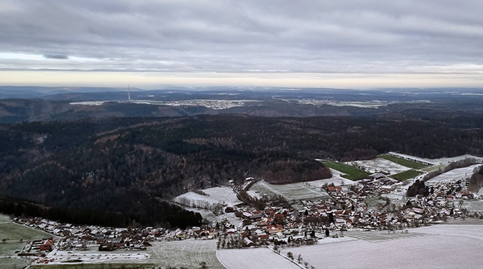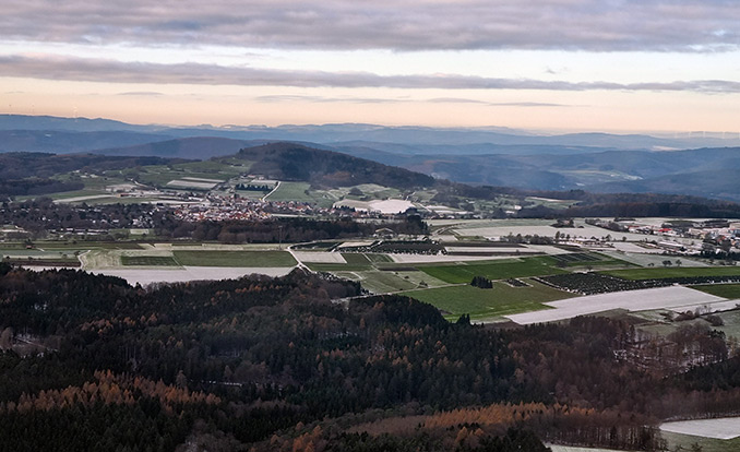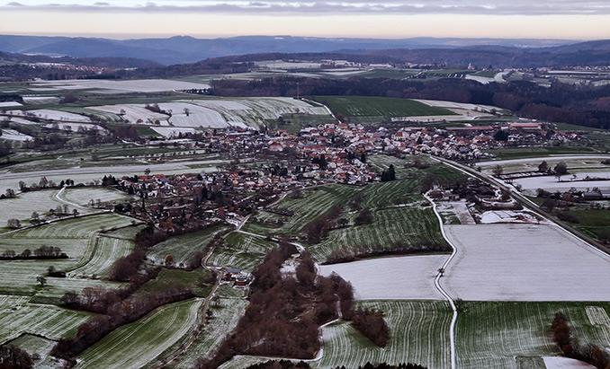 Auf der Hochebene des Winterhauchs entstand die Gemeinde Waldbrunn. (Foto: M. Hofherr)