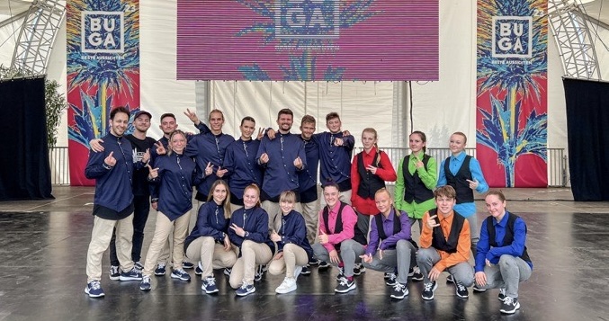 Mannheim. (vd) „Wir sind hochmotiviert, euch „Monnemern“ und allen anderen zu zeigen, was das Städtchen Buchen bzw. die nordbadische Provinz an weltmeisterlicher Tanzperformance zu bieten hat“, begrüßte Moderator und Projektleiter Volker Schwender am vergangenen Samstag bei schönstem Wetter auf der Hauptbühne der BUGA 23 in Mannheim das Publikum.