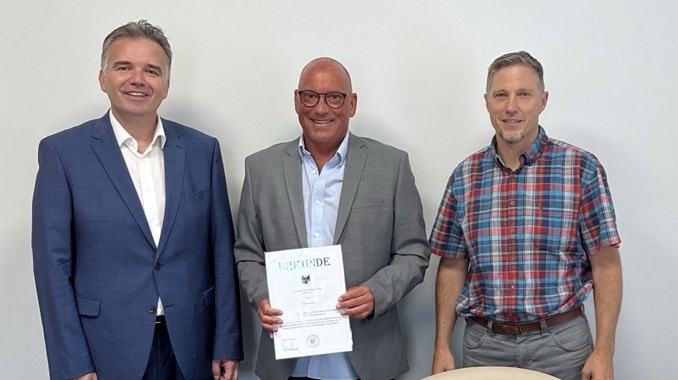 Bürgermeister Marco Eckl überreichte dem Jubilar, im Beisein von Hauptamtsleiter Dominik Hornung, die Urkunde und gratulierte im Namen der Gemeinde Elztal.