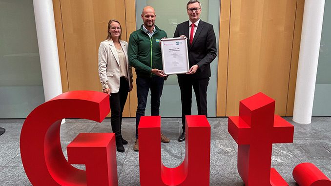 Isabel Seils (li.) von der Sparkasse Neckartal-Odenwald und Sparkassendirektor Michael Krähmer (re.) mit dem Naturpark-Geschäftsführer Paul Siemes. (Foto: pm)