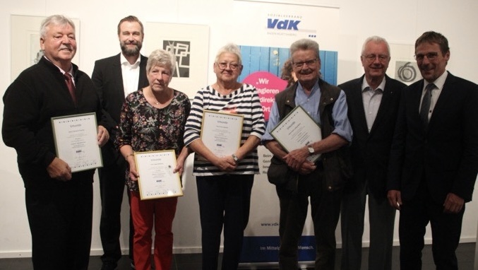 Doch zunächst zeichnete er für zehnjährige Treue zum VdK Alex Bleich, Ingrid Gehrig, Sigrun Hirdina, Wolfgang Hirdina, Erna Lämmle und Ingrid Wollner und für 25jährige treue Verbundenheit Karl Ludwig Mieth und Gerhard Fischer aus.
