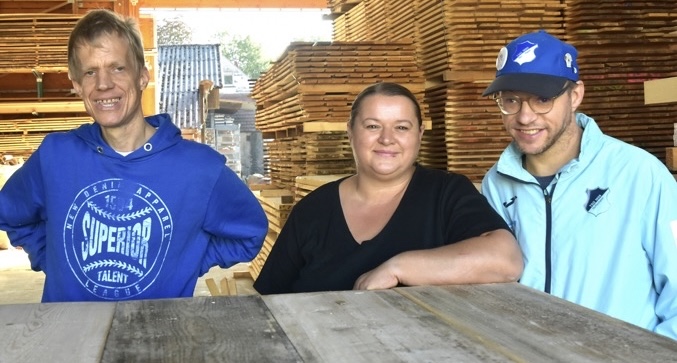 Anna Bernhard begrüßte Mario Fink (l.) und Kai Smyrek zum „Schichtwechsel“ bei Holz-Bernhard. (Fotos: pm)