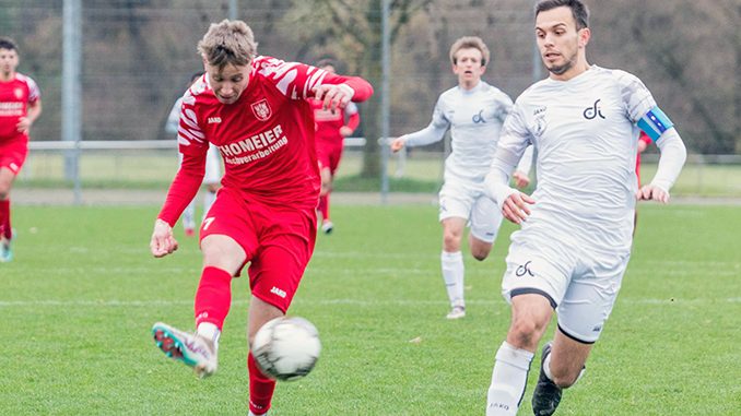 Beide Teams zeigten bereits in den ersten Minuten Einsatz und Bereitschaft, die wichtigen Punkte zu holen. Beide Mannschaften begannen mit Elan ohne komplizierten Spielaufbau. Den ersten Schuss aufs Tor gab VfB-Aktivposten Farid Hazrati (3.) ab, doch dem Abschluss fehlte es an Schwung. Mit mehr Power zog dann Niklas Obertautsch (9.) ab, doch blockte der aufmerksame VfB-Innenverteidiger Silas Wittig zur Ecke.