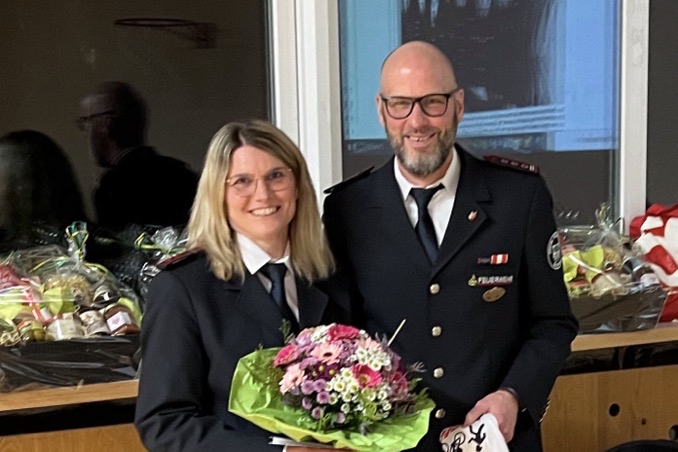 Anschließend nahm Dörsam Maike Reiter und Nick Erletz in die Einsatzabteilung auf. Maike Reiter tritt der Abteilung als Quereinsteigerin bei, Nick Erletz wechselt von der Jugendgruppen in die Einsatzabteilung. Weiter freute er sich, Ronja Böttcher zur Oberfeuerwehrfrau und Lukas Kühner zum Löschmeister befördern zu können.