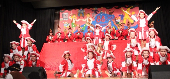 Bevor die 19 Mini-Gardemädels ihren Trainingsfleiß bei den Trainerinnen Chiara Schneider und Sophia Rieker gekonnt unter Beweis stellten, gab Bürgermeister Thomas Ludwig einen gereimten Rückblick auf 88 Jahre Seggemer Faschenacht.