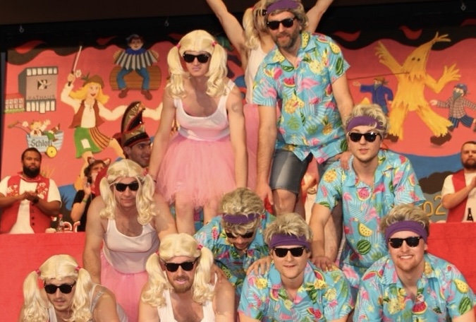 Es gab auf jeden Fall kräftig auf die Ohren, wonach Tanzmariechen Chayenne Arndt, trainiert von Chiara Schneider und Maren Antunovic, als charmanter Wirbelwind und Wohltat für die Augen einige Stimmungsraketen abfeuerte, und die Auszeit der Zimmermer Fugsche-Mamis einläutete, die mit den Trainerinnen Laura Barth und Madeleine Nohe nach dem Besuch im Schönheitssalon Party auf Mallorca ansteuerten.