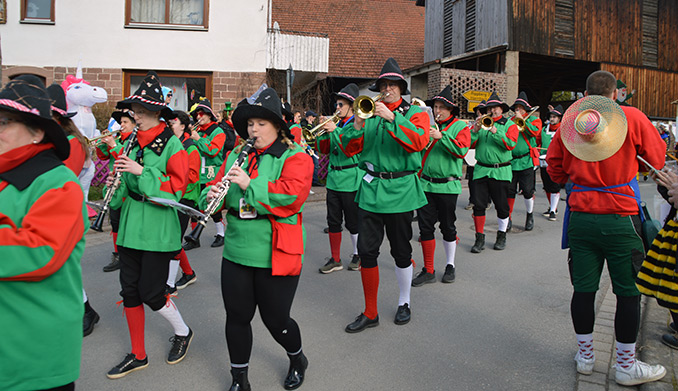 Heddebörmer Musikanten sorgen für Stimmung beim Umzug. (Foto: Helga Schwab-Dörzenbach)