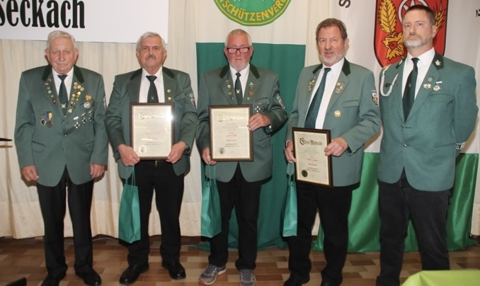 Zu Ehrenmitgliedern des Schützenvereins Hubertus 1924 wurden aufgrund ihrer besonderen Verdienste um den Verein Gerhard Gedemer, Gottlieb Kohler und Gerhard Bundschuh ernannt. Mit dem gemeinsam gesungenen Badnerlied wurde zu Büffet und gemütlichem Miteinander übergeleitet.